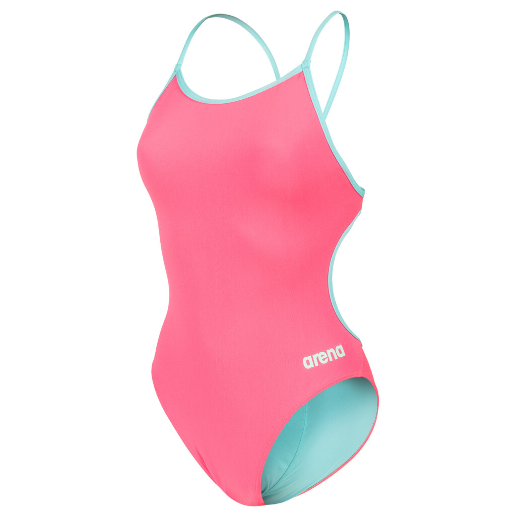Swimsuit Lace Back Solid shocking pink/water